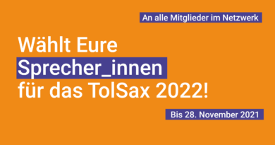 wir laden Euch herzlich ein, Euch als Sprecher_in des Netzwerkes Tolerantes Sachsen für das Jahr 2023 zu bewerben. Der Sprecher_innenrat bildet den Beirat des Fördervereins Tolerantes Sachsen e.V. und ist für die inhaltliche Arbeit des Netzwerkes zuständig. Für die konkrete Umsetzung der Beschlüsse steht dem Sprecher_innenrat die Koordination des Netzwerkes zur Seite.