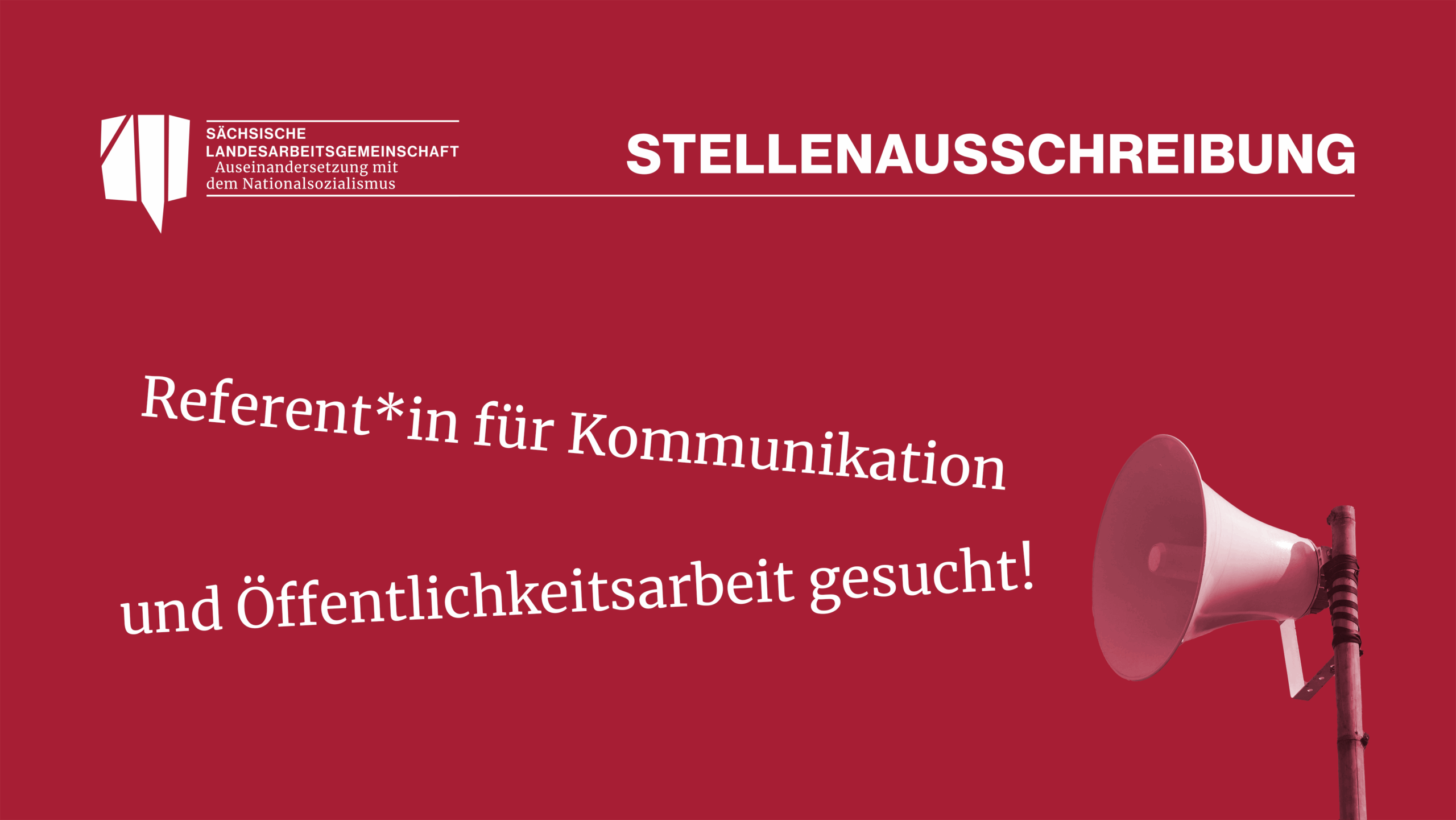 Die Stiftung Sächsische Gedenkstätten zur Erinnerung an die Opfer politischer Gewaltherrschaft sucht zum 01.02.2026 eine_n Referent_in für Vermittlungs- und Öffentlichkeitsarbeit (20h/Woche, Arbeitsort: Torgau, Bezahlung in Anlehnung an TV-L E11, befristet bis 31.12.2026). Bewerbungsfrist: 15.12.2025.
