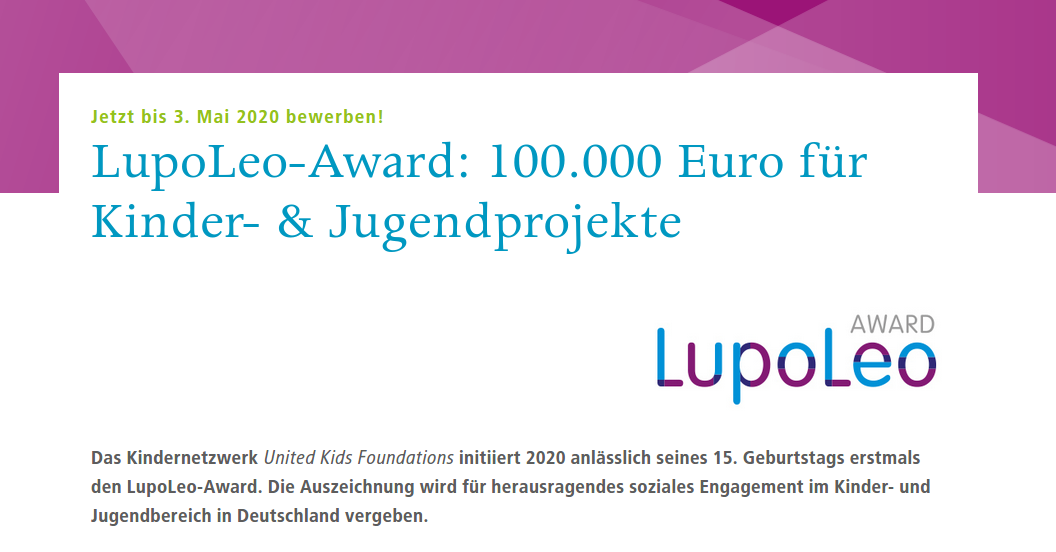 WeiterlesenLupoLeo-Award: 100.000 Euro für Kinder- & Jugendprojekte