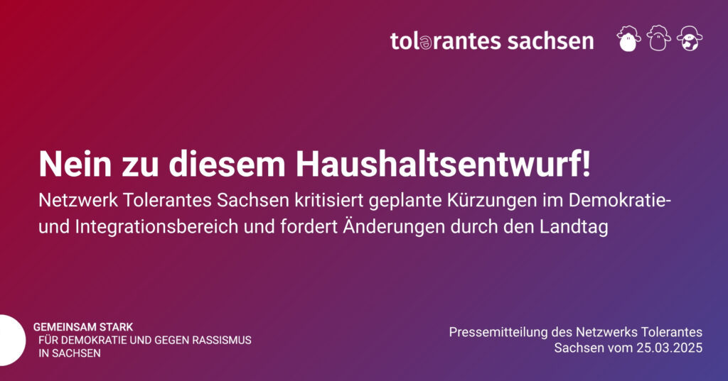 Netzwerk Tolerantes Sachsen kritisiert geplante Kürzungen im Demokratie- und Integrationsbereich und fordert Änderungen durch den Landtag