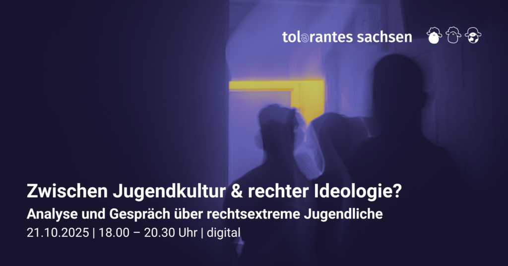 Am 21.10.2025 von 18.00 bis 20.30 Uhr findet die nächste digitale TolSax-Konkret statt. Wir analysieren, warum rechte Jugendgruppen in Sachsen wachsen – mit Blick auf gesellschaftliche und politische Ursachen. Gemeinsam tauschen wir uns aus, wie Zivilgesellschaft darauf reagieren und demokratisches Engagement stärken kann.