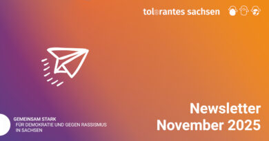 Im Editorial des Januar-Newsletters blickt das Team der Koordination des Netzwerks Tolerantes Sachsen auf das bewegte Jahr 2024 zurück: „Trotz aller Rückschläge, trotz polarisierender Konflikte und Kürzungen – es gibt uns, überall in Sachsen, Menschen, die sich Tag für Tag für Demokratie, Vielfalt und Menschenrechte einsetzen.“ Im nächsten Newsletter findet Ihr dann wie gewohnt wieder Termine, Fördertipps und weitere Anregungen für Euer Engagement in Sachsen. Bis dahin findet Ihr alle relevanten Informationen auf unserer Website.